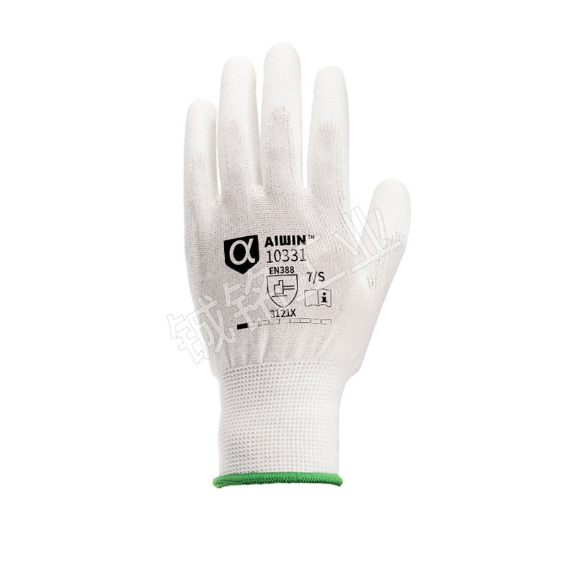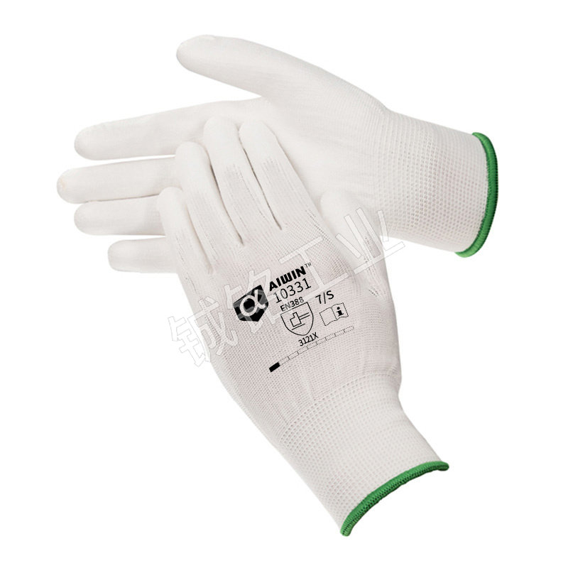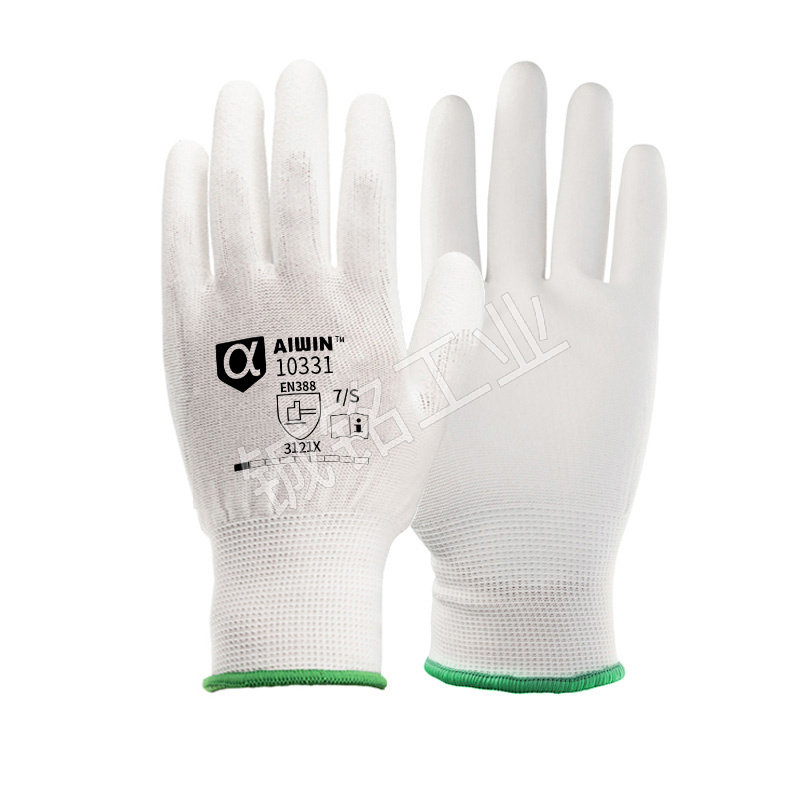 AIWIN 经济款涤纶PU掌浸手套 10331 7码 白色 10双 1包