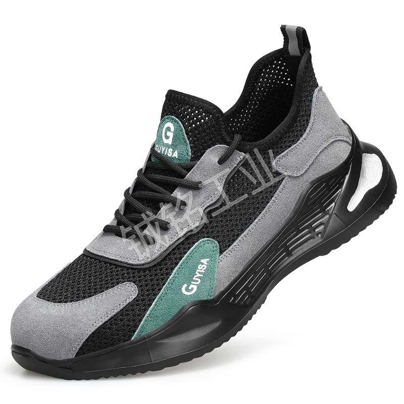GUYISA/古伊萨 夏季透气耐磨劳保鞋 1033S 36码 黑灰拼色 防砸防刺穿 1双