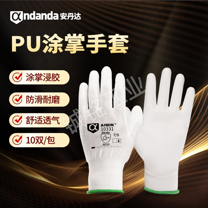 AIWIN 经济款涤纶PU掌浸手套 10331 7码 白色 10双 1包