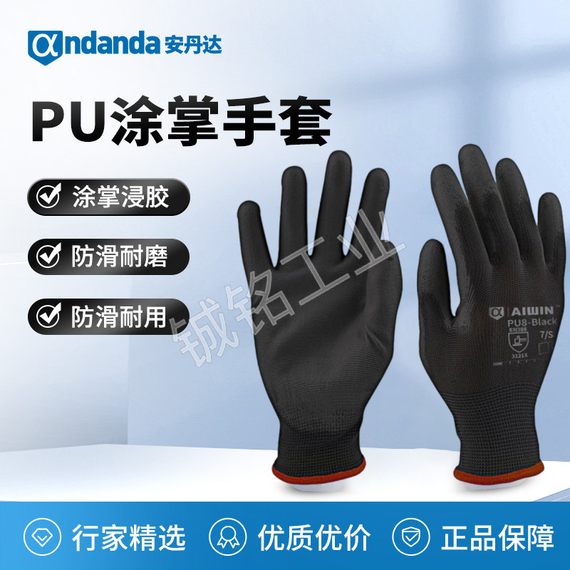 AIWIN 涤纶黑PU手套(掌浸) PU8-Black S(7) 黑色 PU掌部涂层 1副