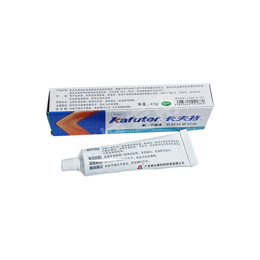 ·中性单组分室温硫化硅橡胶,常溫下吸收空气中的水份固化; ·无毒、无污染、无腐蚀。具有良好电绝缘和抗电弧性能,耐老化、防潮,有良好的粘接性能。