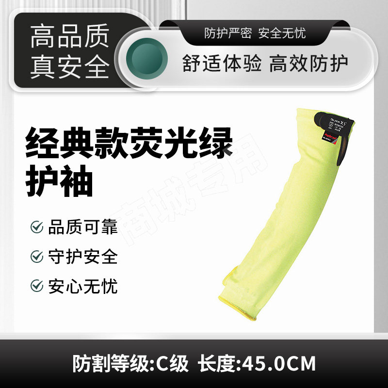 ·良好性能ECONOCUT防割纤维 ·针织套袖,拇指独立套口,上肢松紧可通过尼龙收紧搭扣调节 ·灰色,13针,长度55mm ·